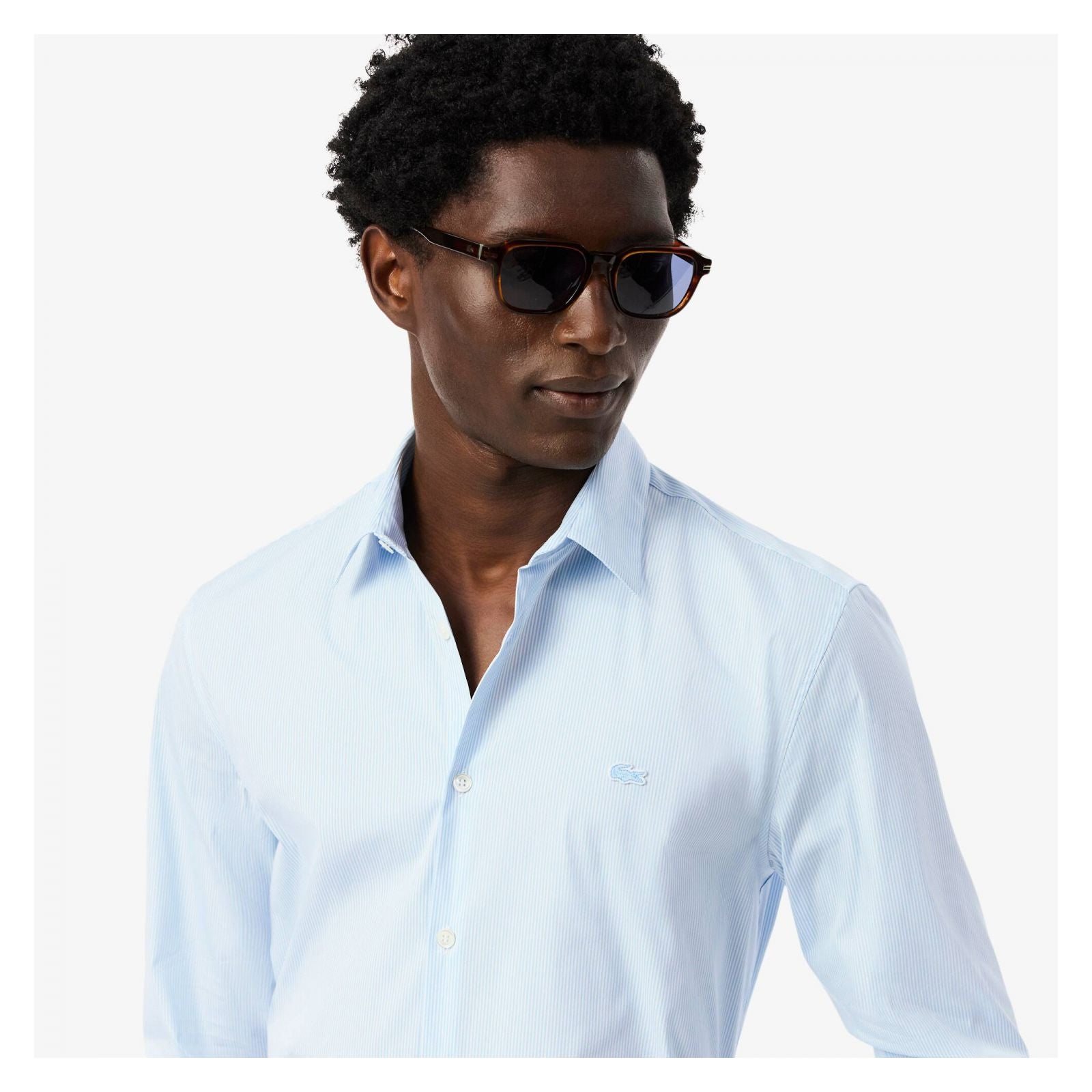 La comodidad y la modernidad destacan en esta camisa de algodón stretch a rayas. estilo lacoste, mañana, tarde y noche.