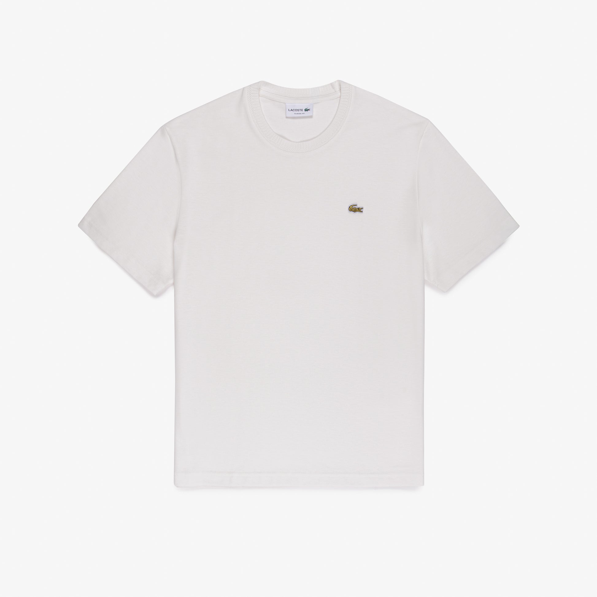 Esta camiseta de mezcla de algodón y lino es el máximo exponente del estilo casual. presenta un detalle en el escote para un toque original, más un cocodrilo bordado dorado en el pecho, sello del estilo lacoste.