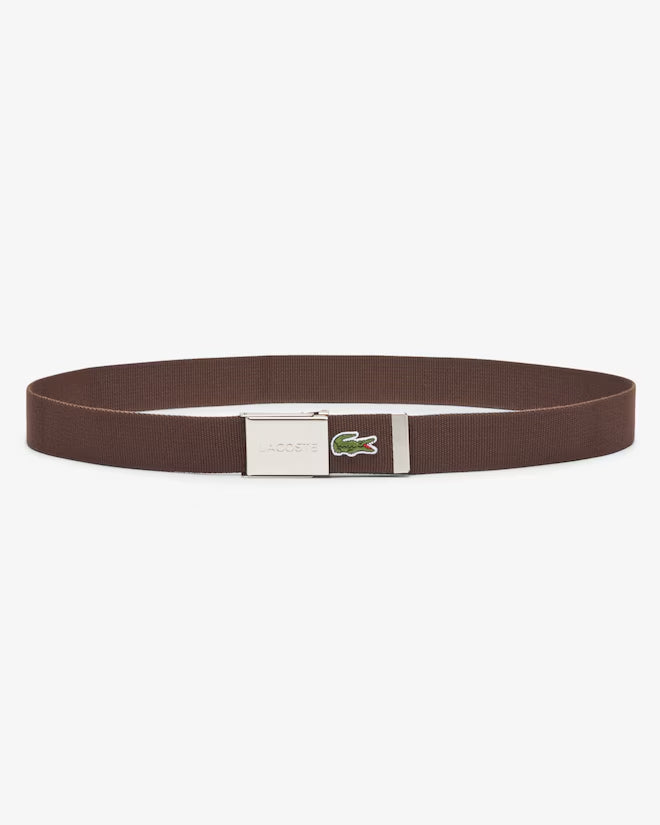 Este cinturón tejido, flexible y liviano, fabricado en francia, se inspira en la polo original l.12.12 creada por lacoste en 1933. el tejido texturizado toma inspiración de nuestro piqué característico, mientras que la hebilla plana de acero mate grabada y el logo bordado agregan una dosis extra de estilo croco.