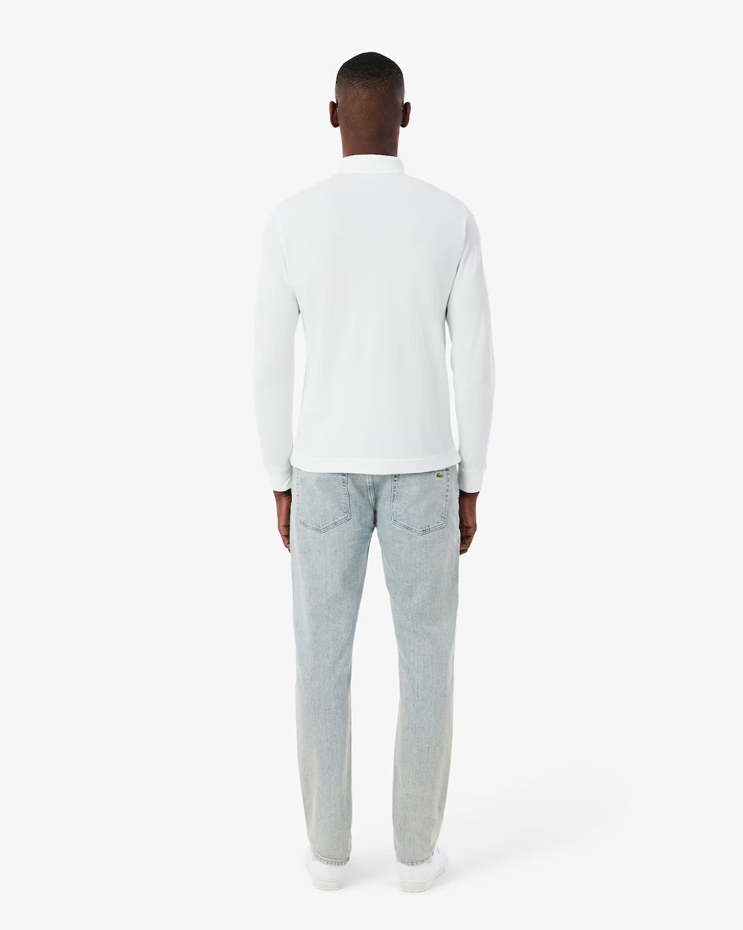 Estos jeans son un esencial del guardarropa masculino, con un corte ajustado moderno y un cómodo denim elastizado. el clásico diseño de cinco bolsillos se realza con detalles icónicos de lacoste: un remache en nuestro característico tono de verde, pespuntes distintivos y un estampado en el interior de los bolsillos.