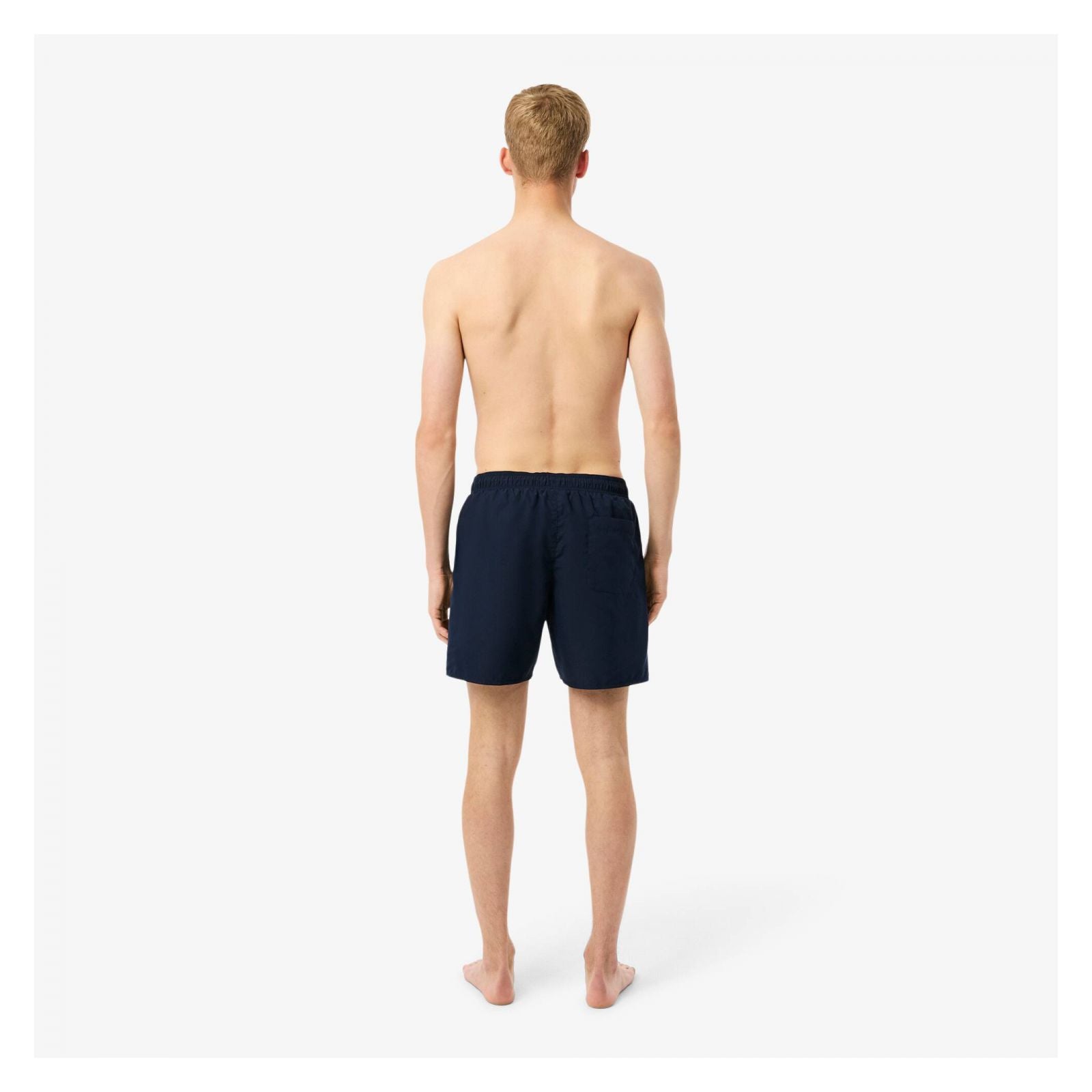Estos shorts de baño de largo medio son un esencial del guardarropa lacoste. hechos con tela liviana y forro de malla para un acabado de secado rápido y libertad de movimiento. un clásico atemporal, con diseño minimalista y terminado con el cocodrilo característico. se venden con una bolsa de natación de tela reciclada.